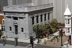 When Denis moved back to Ireland he brought the train set with him and began to build the model railway village. The intricate detail of the village must be seen to be believed. Each section tells a story depicting a day in the life of a village. From construction workers building a road,to a market stall selling their wares to a lady hanging washing on the line the attention to detail is remarkable. Each individual object is hand painted, each brick used individually moulded. Each traffic light and street lamp lights up and Denis built a separate operating system to activate the trains.
