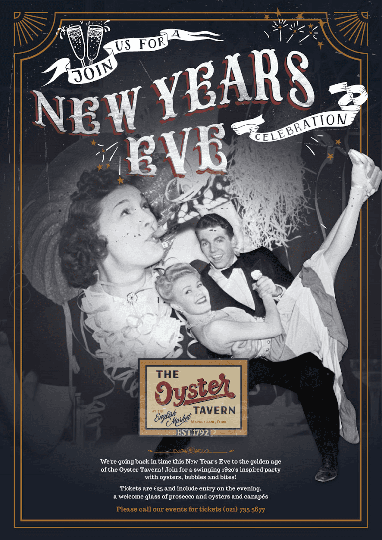 Tickets cost €25pp, and to book your ticket for the party of the year and to ring in the New Year in style at The Oyster Tavern call the events line on 021 7355677.